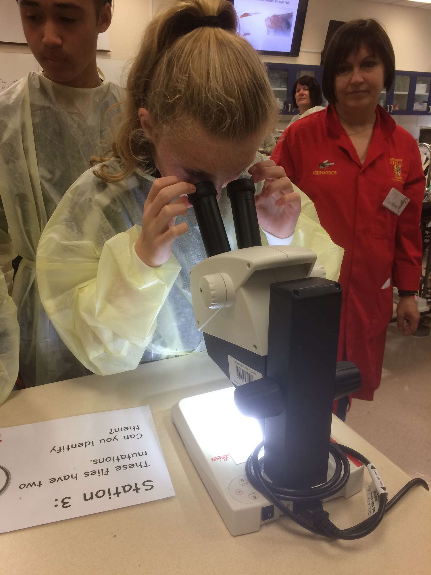 While we were waiting we did a task looking at mutations in fruit flies. We had to look through a microscope and identify the mutation we could see at 5 different stations of flies.
